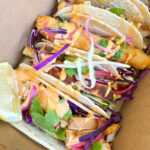Mexican Chicken – Tender, spiced chicken with cabbage, avocado, house-made pickled onion, coriander, and sweet corn.