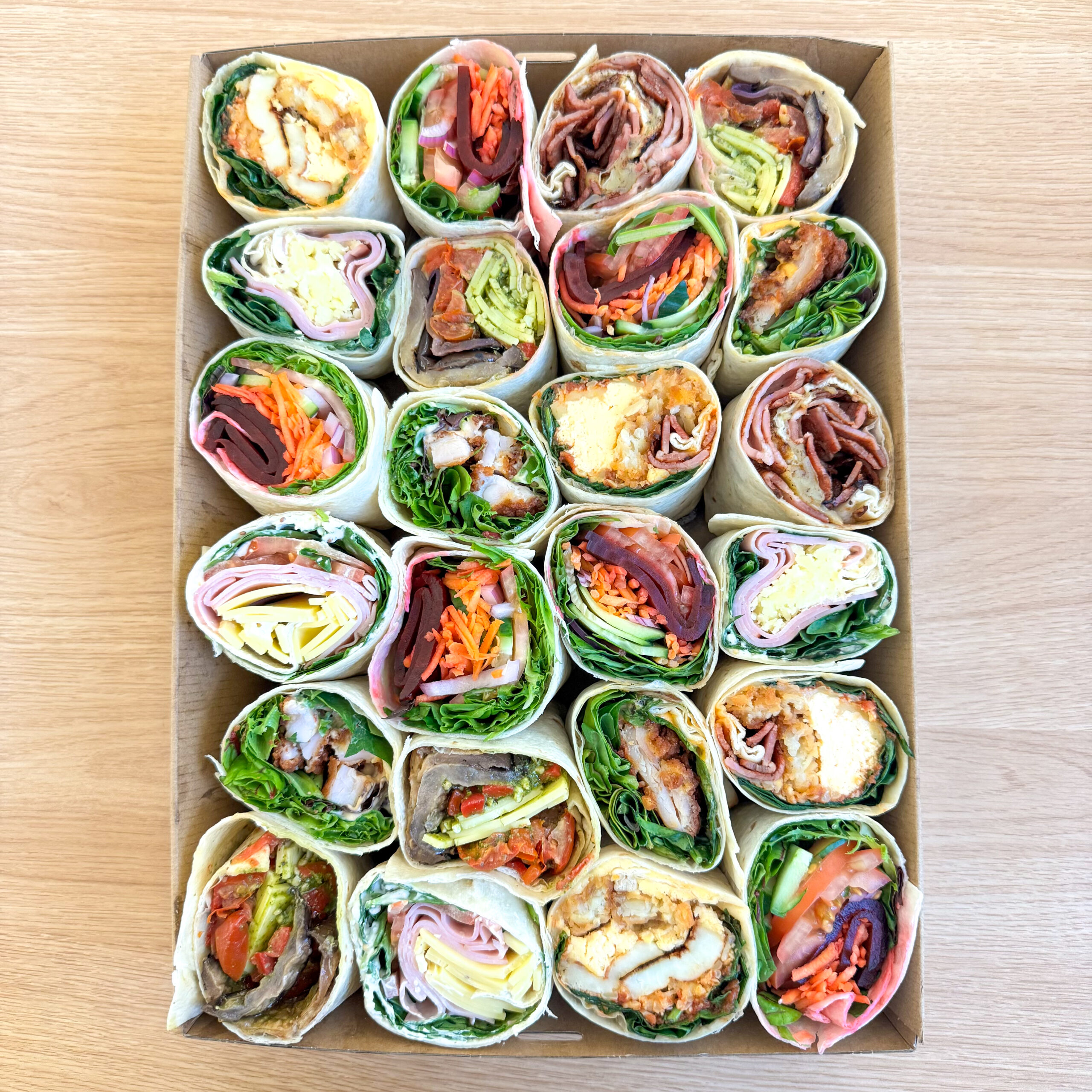 Breakfast wraps are always a great idea! Our wrap platter includes a selection of delicious wraps, perfect for any occasion.